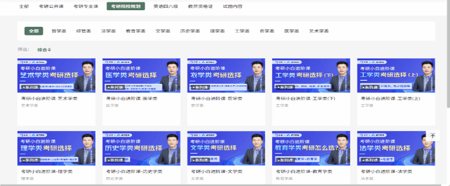 平台视频资源包括考研公共课、考研专业课、考研院校规划课程(独家)、英语四六级和教师资格证五个课程部分组成。用户可以通过PC端和移动端(微信)在线查阅使用视频课程,平台课时总超16000课时,最新26年考研课程超7000课时。